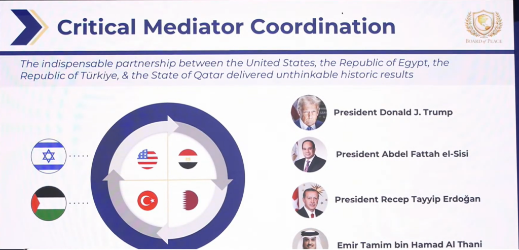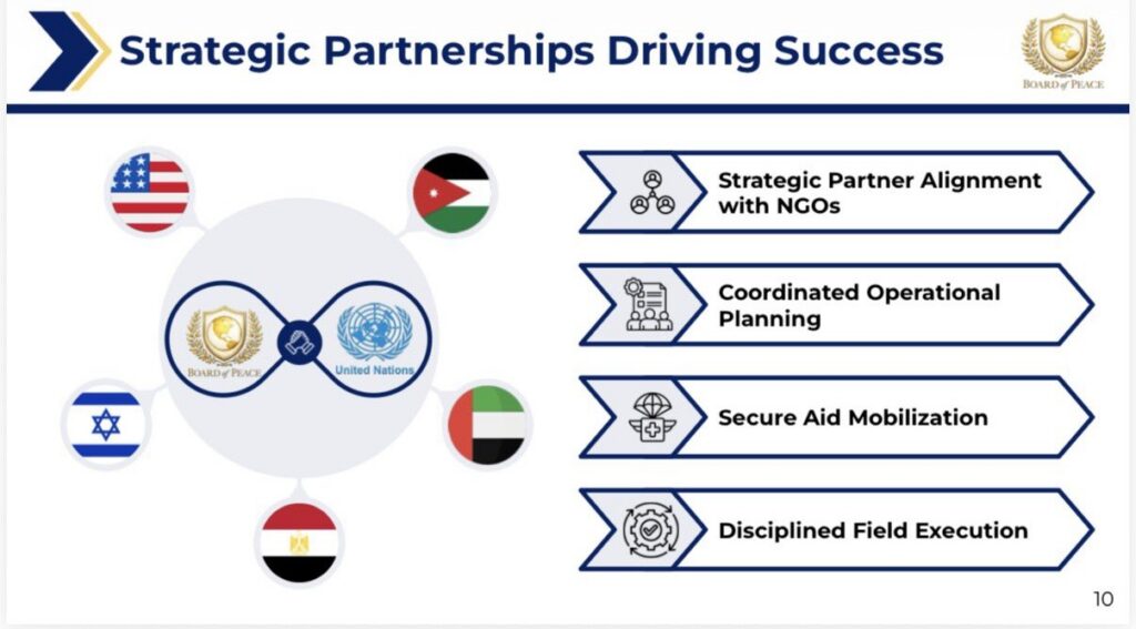 Our mandate is simple, President: step by step to build the foundation for lasting peace, dignity and prosperity for the people of Gaza. And this is where we count on your continued leadership and support. Blessed the peacemaker. …