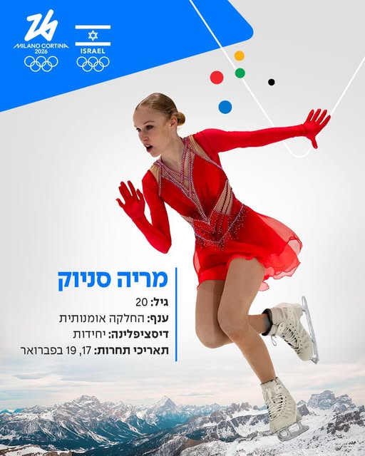 In Milan, 20-year-old figure skater Mariia Seniuk will be the flag-bearer at the opening ceremony. She’s the four-time-defending Israeli national champion. She and her family moved to Israel when she was 8. she was born in Moscow and now trains there.