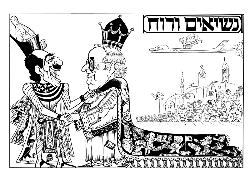 His famous works included portraying PLO leader Yasser Arafat with bomb-shaped sunglasses until the Oslo Accords of 1993. He depicted Egyptian President Anwar Sadat, Israeli Prime Minister Menachem Begin and U.S. President Jimmy Carter with a dove of peace acting as a magician during the negotiations for the Camp David Accords. Public figures, mainly politicians, vied for spots among Ze’ev’s weekly caricatures.