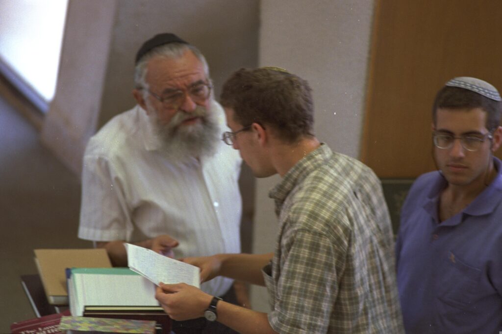 As a public and spiritual leader commanding great respect, Amital is invited by Shimon Peres to serve as a minister without portfolio to improve relations between the religious and secular communities after Yitzhak Rabin’s assassination in 1995.