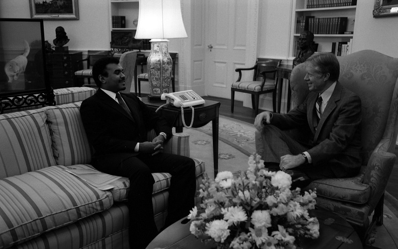 After Egyptian President Anwar Sadat’s diplomatic opening with Israel, almost all Arab states publicly criticized his engagement with Jerusalem. Relations between Saudi Arabia and Egypt soured; the U.S. tried to mend Saudi and Egyptian diplomatic fences. At a White House meeting, Sadat, President Jimmy Carter, Saudi Foreign Minister Bandar bin Sultan and U.S. National Security Adviser Zbigniew Brzezinski listened to Carter’s request to have the Saudis support Sadat’s initiative and not remain like the Jordanians and Palestinians with profound opposition to the Egyptian-Israeli treaty.