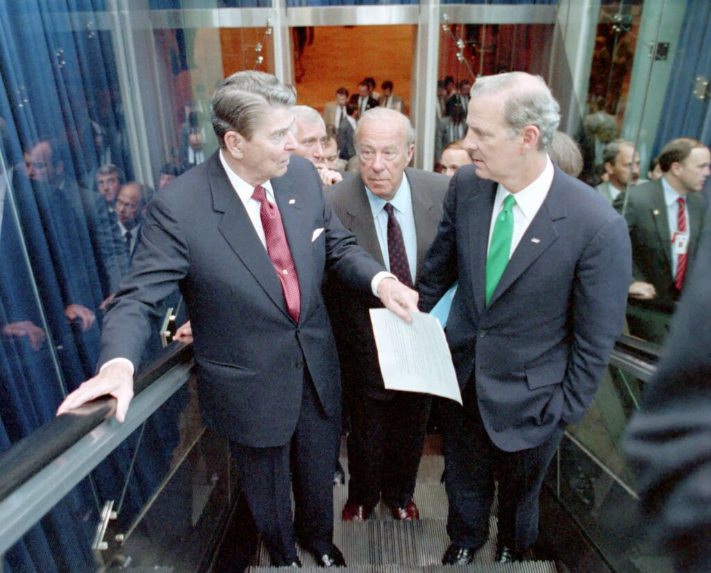 In the waning days of the Reagan administration, Secretary of State George Shultz pushes for U.S.-mediated peace negotiations, including Palestinians, and offers the outlines for a resolution to the conflict.