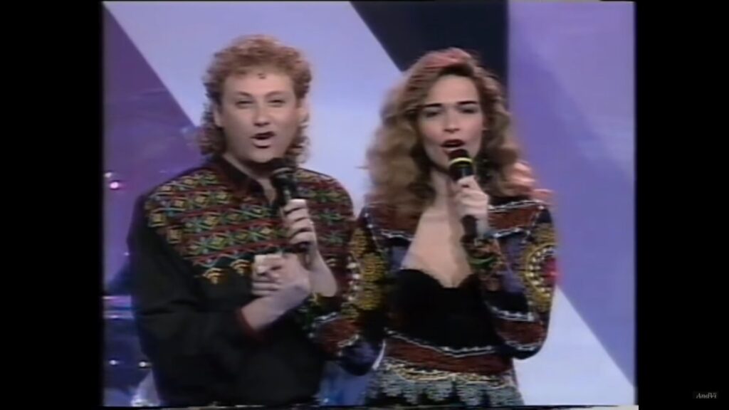 View and listen to the Israeli song performed in the 1991 Eurovision Song Contest, “Kan.” The song placed third and became one of Israel’s popular “Shirei Eretz Yisrael” (songs of the Land of Israel). The Datz Duo wore...
